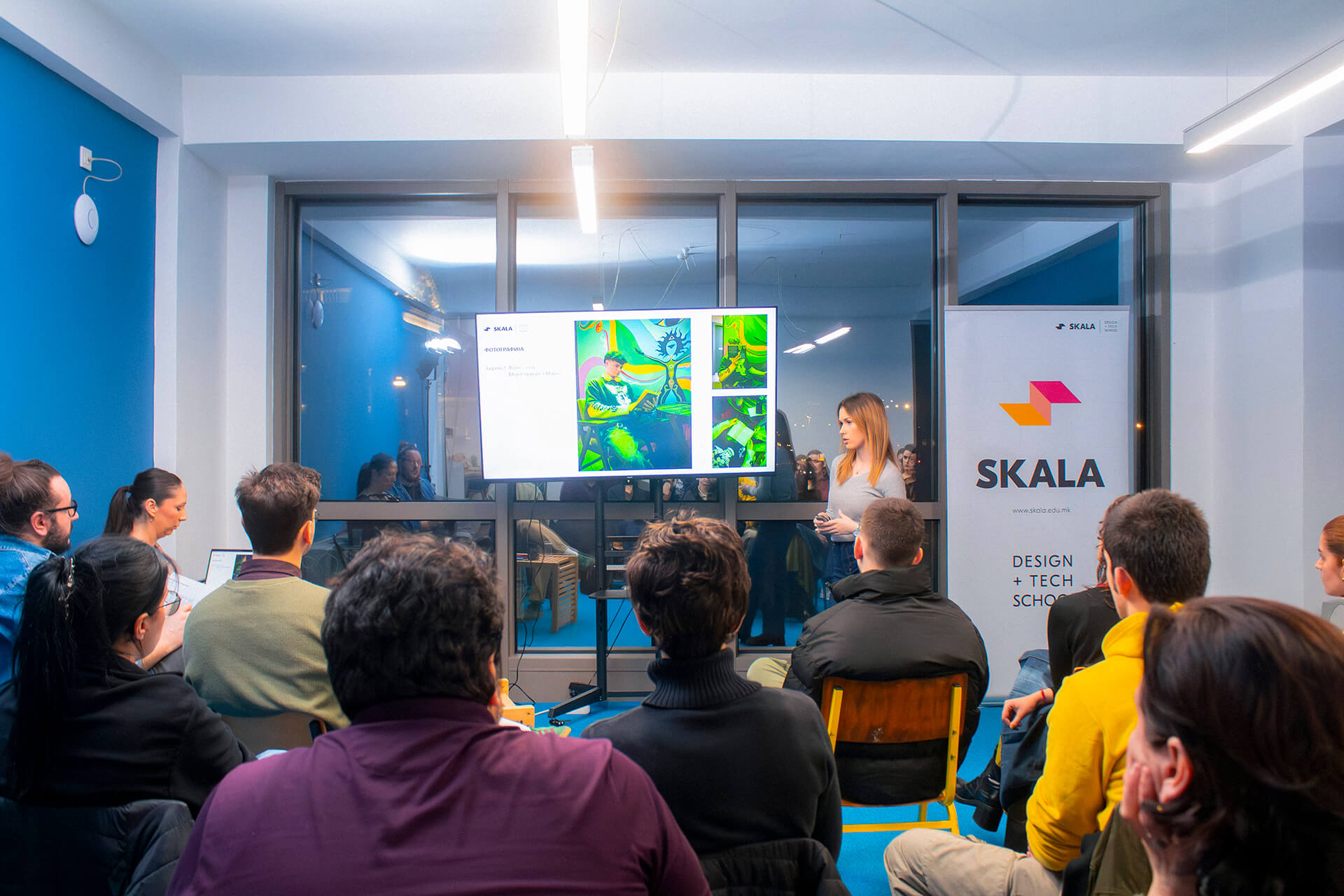 Студентите не одговараат на прашања, тие презентираат сопствени визуелен проекти. Дизајн, моушн дизајн, фотографија… Идеи, концепти и дела коишто поминале низ процес.