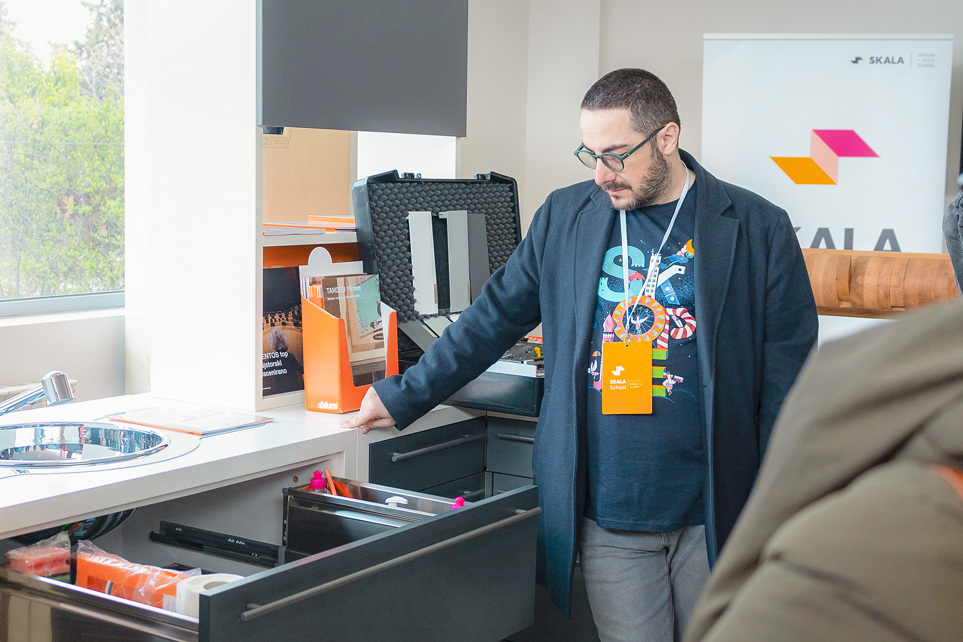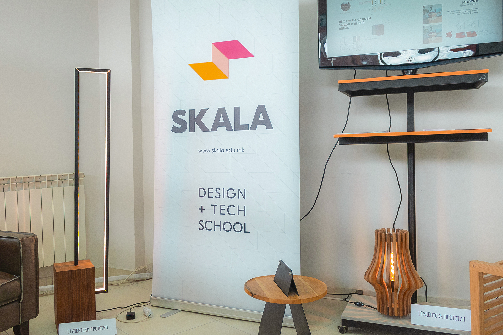 Оваа година, за првпат и на наше големо задоволство, успеавме да го збогатиме настанот со присуството на Скала. Идејата зад оваа соработка е да се создаде платформа каде тековните и алумни студенти од Академијата за ентериер и продукт дизајн можат да ги претстават своите проекти пред стручни лица во фелата, да пронајдат соработници или да се запознаат со потенцијални работодавци.