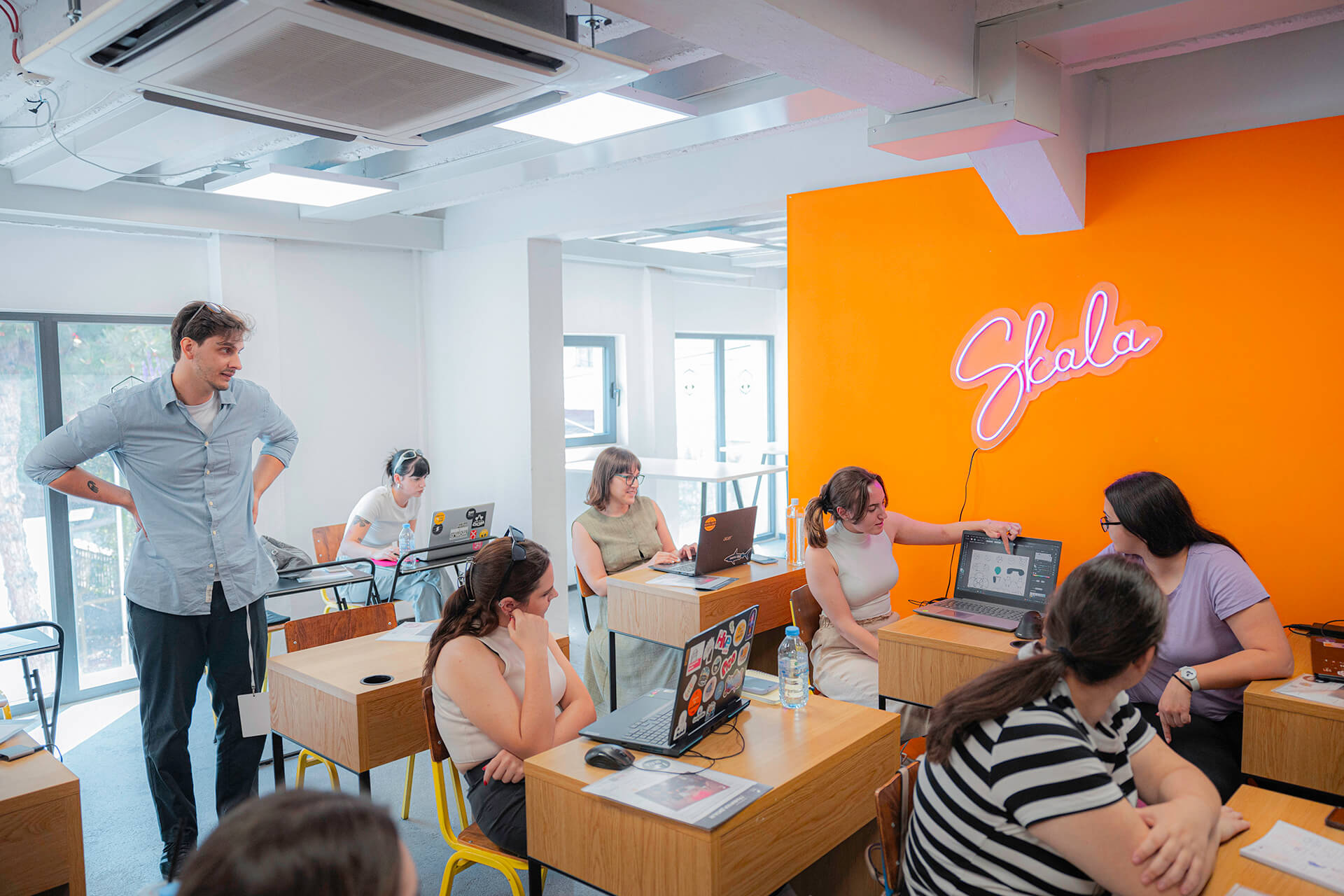 Во Скала наставата се одвива со физичко присуство, затоа што директната работа со ментори, тим и простор прави вистинска разлика за твојот развој.
