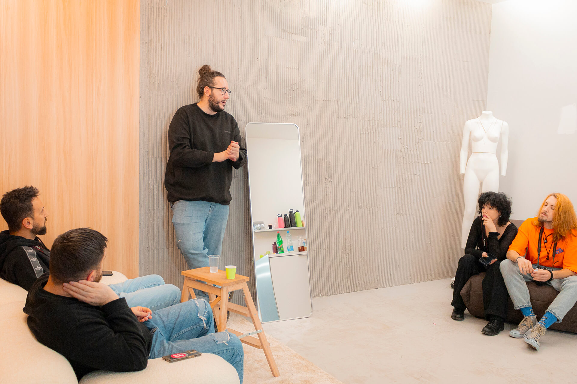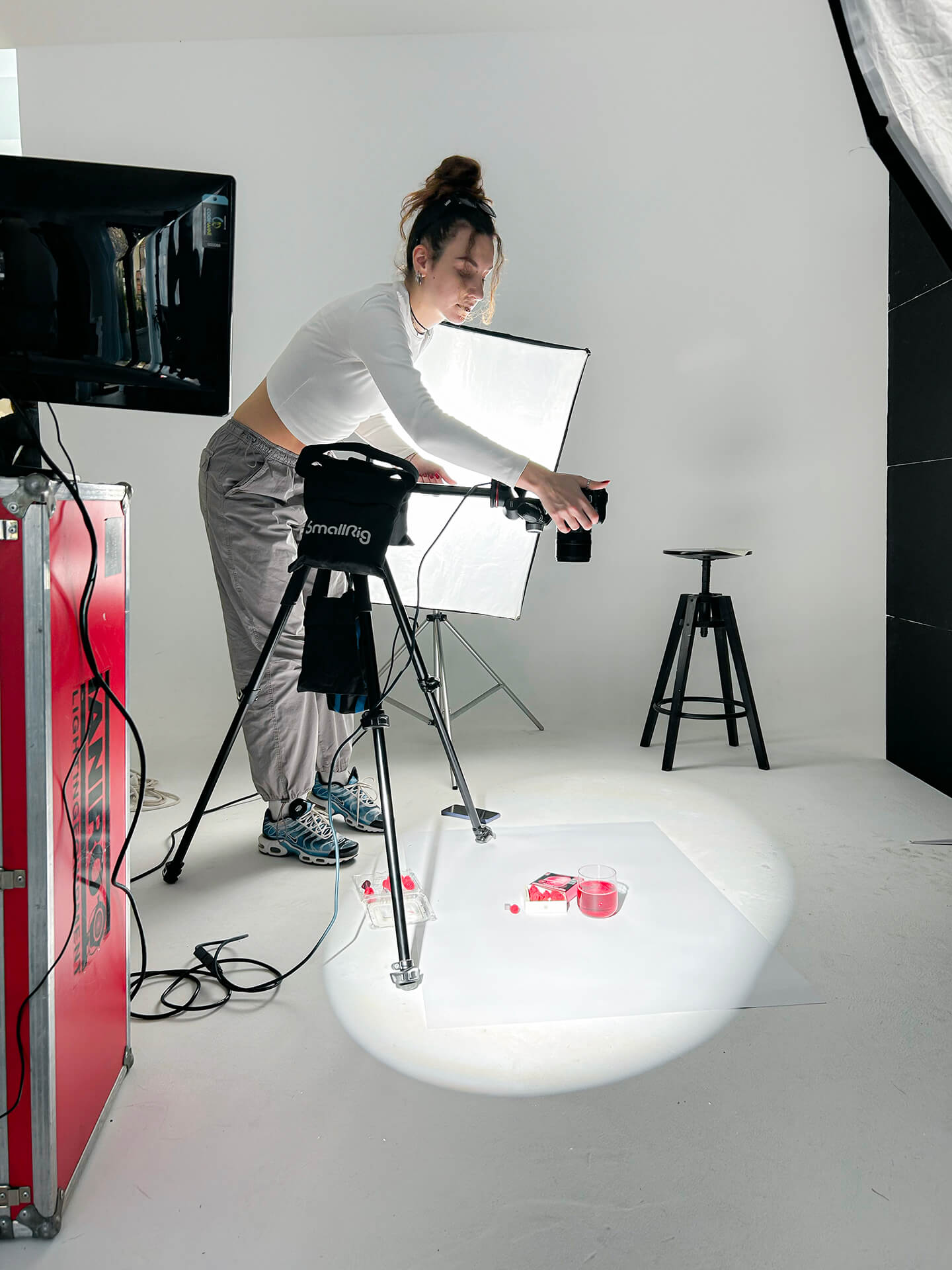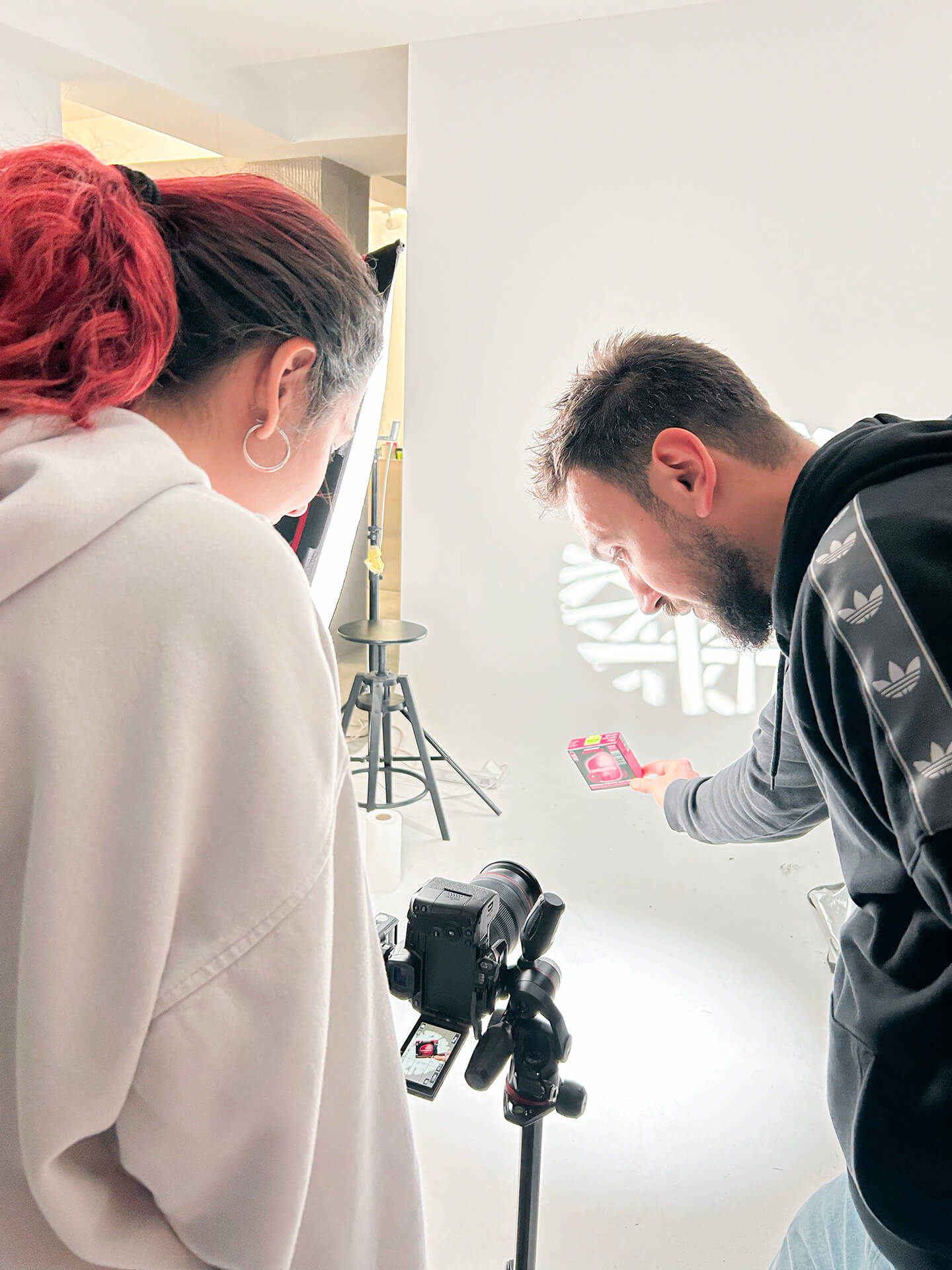 Кога дојде денот за хакатонот, веќе имавме јасна идеја кои концепти да ги реализираме. Фотографирањето во студио беше сосема поинакво искуство — динамично, брзо и преполно со енергија. Постојано го менував поставувањето, го прилагодував осветлувањето, менував реквизити и експериментирав со фокусот.